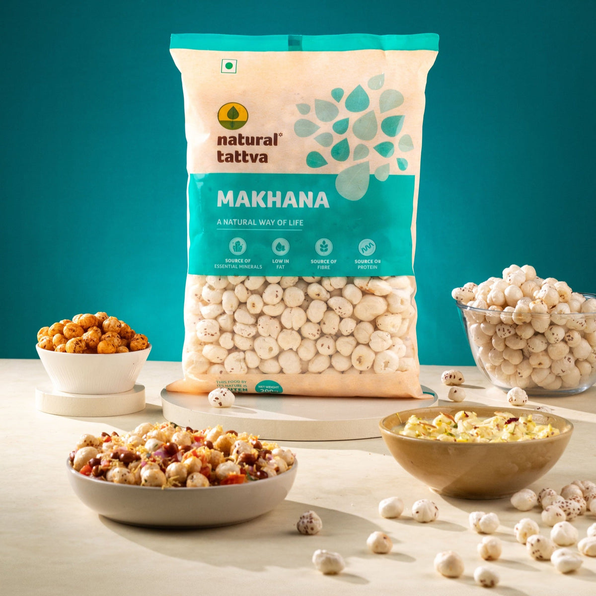 NATURAL TATTVA Makhana (Fox Nuts) 200g Pack - Natural & Gluten-Free, Healthy Snack, Rich in Protein & Fiber | Ideal for Roasting, Snacking, & Cooking