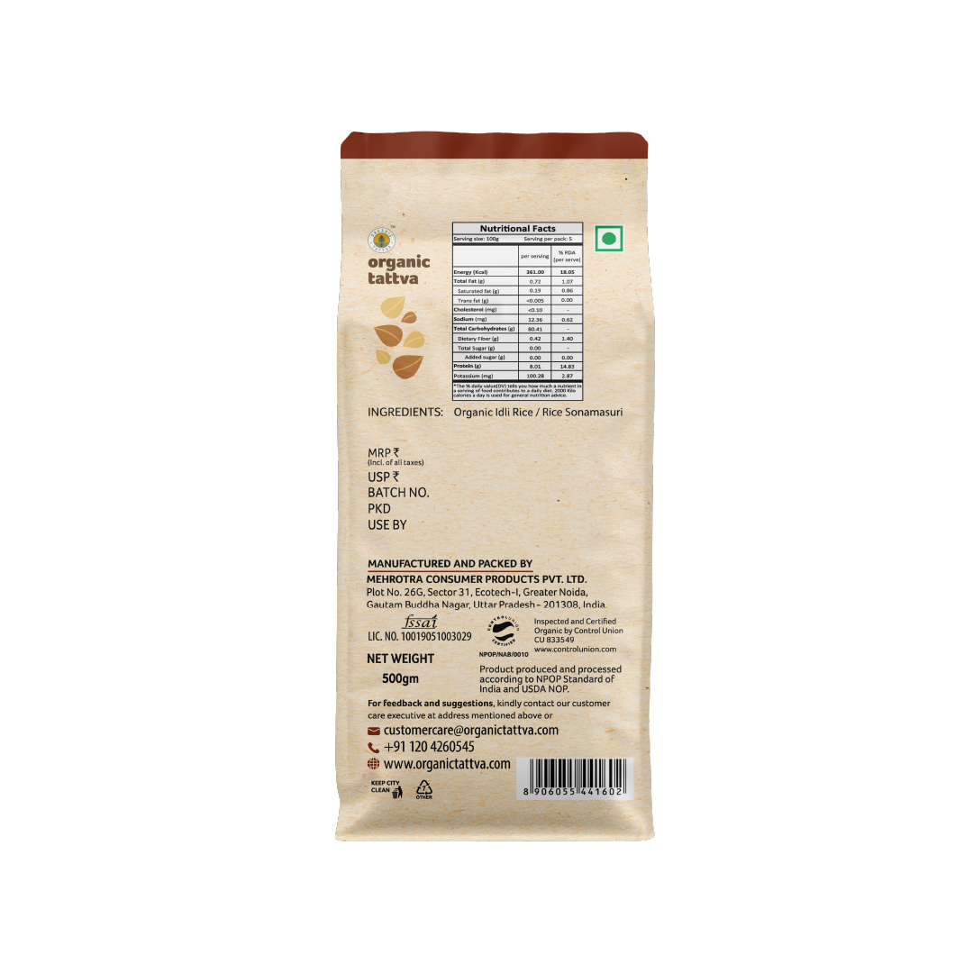 An excellent source of calcium, iron and protein, Organic Rice Rava Idli is made from the finest quality ingredients. One bowlful of Organic Rice Rava Idli contains dietary fibres, sodium, and other essential nutrients your family needs. Since it's entirely gluten-free, it's a great alternative to wheat, especially for people with celiac disease and gluten allergies. Processed with the utmost care in a hygienic environment, this mix always ensures your family's good health.