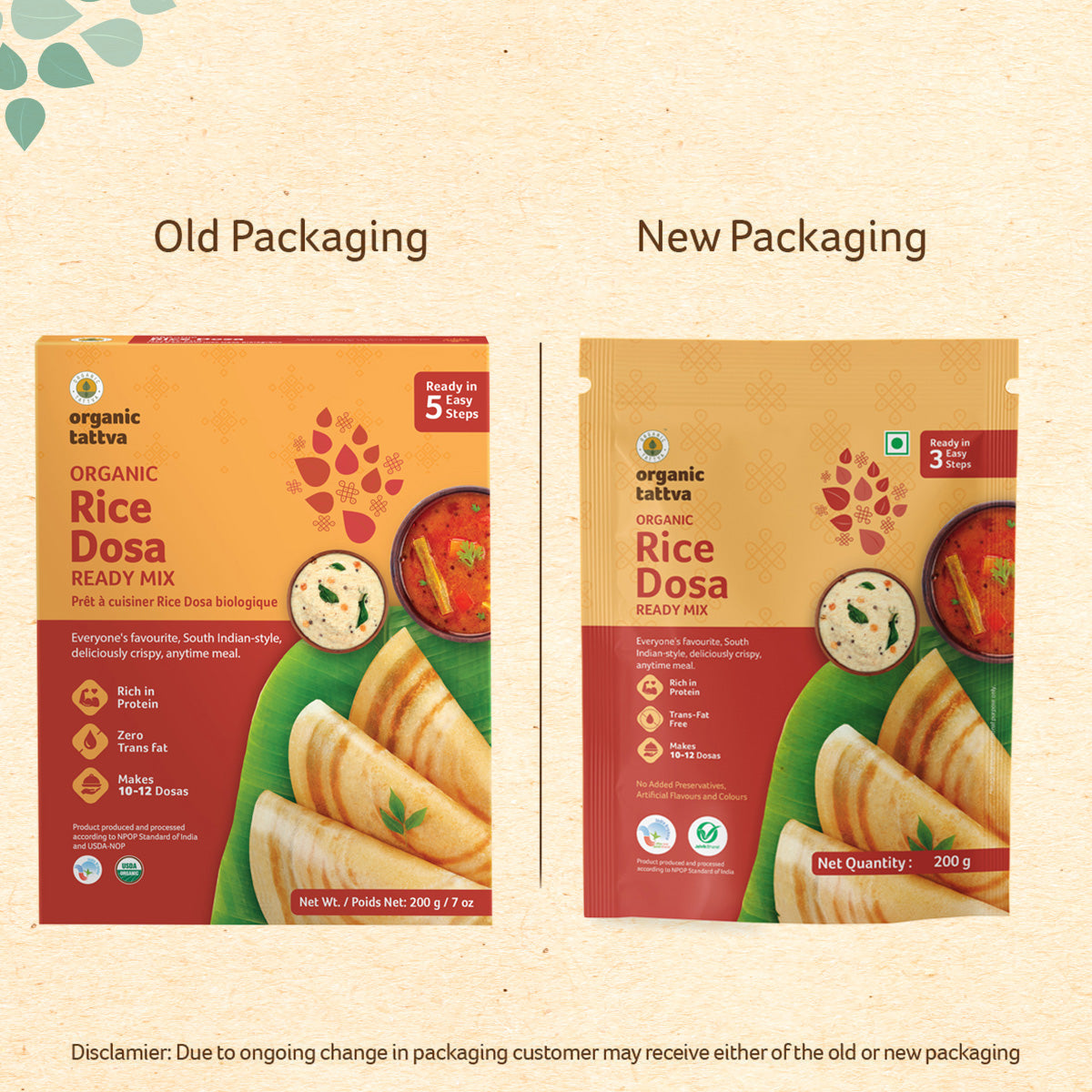 Everyone's favourite South Indian-style, deliciously crispy, anytime meal, is what you can rightly call, Organic Rice Dosa Ready Mix by Organic Tattva! A great breakfast option or a fulfilling lunch one, this ready mix is tasty and wholesome either way and allows you to focus on your family’???s wellbeing, easily, every day! All you need to do is add a little water to the mix and follow the recipe instructions. You’???ve got a delicious meal ready in absolutely no time! Tastes best with some coconut chutney and a bowl of hot sambar, alongside. Does not contain preservatives, artificial colours, and flavours.’??ƒ?§ Rich in protein’??ƒ?§ Zero trans fat’??ƒ?§ Makes 10-12 dosas’??ƒ?§ Ready in 5 easy steps