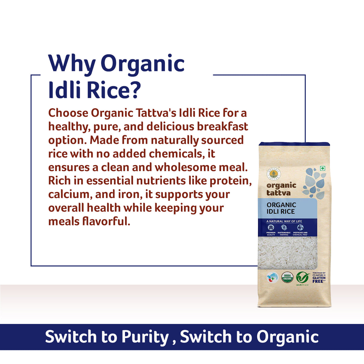 Whether you’re making traditional Idlis for breakfast or experimenting with steamed rice cakes and dosas, Organic Tattva’s Organic Idli Rice guarantees consistent results — light, fluffy, and full of authentic flavor.
