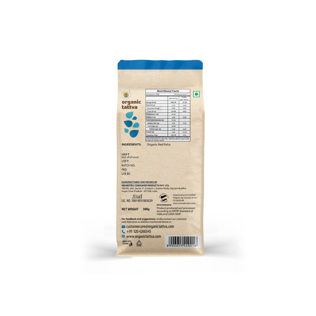 Our organic Red poha is naturally obtained from red rice paddy and is healthy and free from any additives or chemicals. A healthier alternative to normal poha, this red poha makes for an awesome meal which is packed with nutrients. Add that extra flavour and texture to your regular poha and make every breakfast a bit more special. ’??ƒ?§ 100% vegan’??ƒ?§ No additives’??ƒ?§ Gluten-free’??ƒ?§ Zero Cholesterol’??ƒ?§ Zero Trans FatGarnish with lemon, coriander and Organic Tattva peanuts for ideal taste
