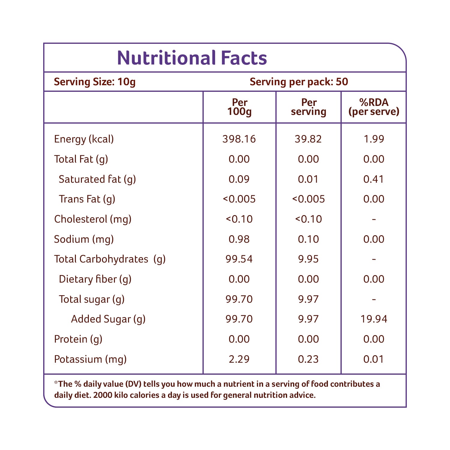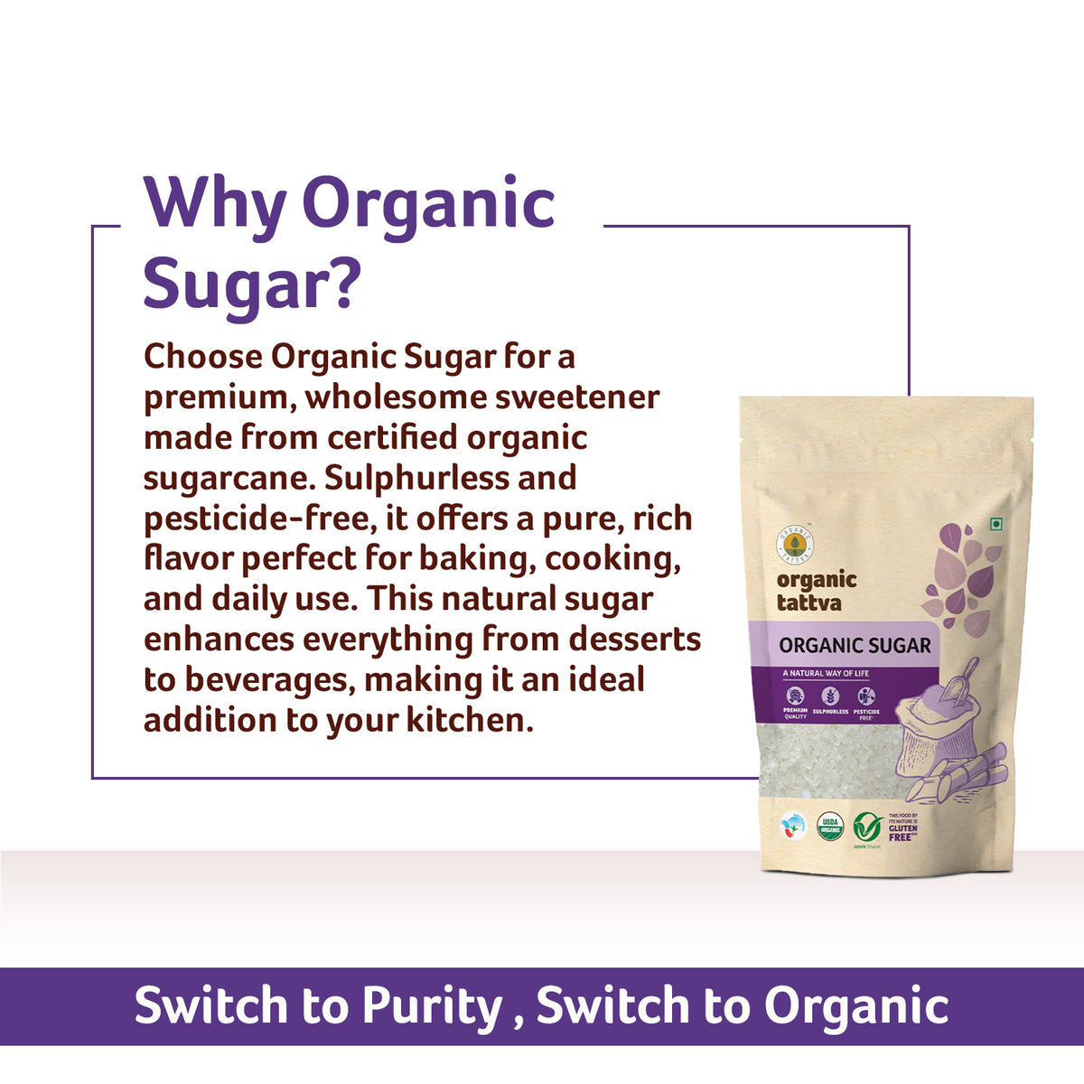 Extracted from freshly squeezed, evaporated, and crystallised sugar cane juice, Organic Sugar by Organic Tattva perfectly complements every food and beverage you prepare that needs sugar. Obtained from organically harvested sugar cane, every ounce of this sugar retains its sweetness to the fullest. ’??ƒ?§ 100% Vegan’??ƒ?§ No additives’??ƒ?§ Zero cholesterol’??ƒ?§ Zero trans fats’??ƒ?§ Naturally sourcedIdeal for all types of sweets and mithais like halwa, ladoos, jalebis, puddings, cakes, as well as beverages like shikanji, lassi and juices.