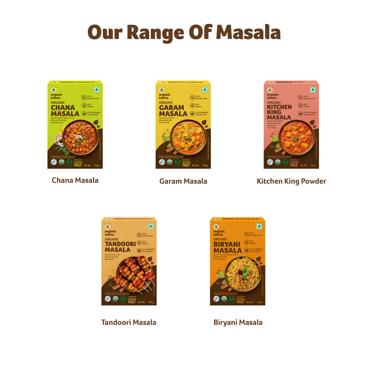 A wholesome blend of exotic and flavourful spices, Organic Biryani Masala by Organic Tattva lends an authentic taste to every biryani you make. Use it with biryani of every kind ’??? vegetarian or otherwise. ’??ƒ?§ Made from whole spices’??ƒ?§ Dry roasted’??ƒ?§ No additives’??ƒ?§ Rich flavour and aroma