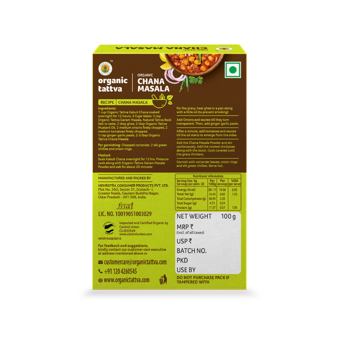 Also known as Chole Masala, Chana Masala by Organic Tattva is a versatile spice mix that’s used to make a hearty North-Indian style chickpea curry. For restaurant-like chana masala, combine this flavourful spice mix with some kasuri methi and finish with a garnish of finely chopped coriander leaves.