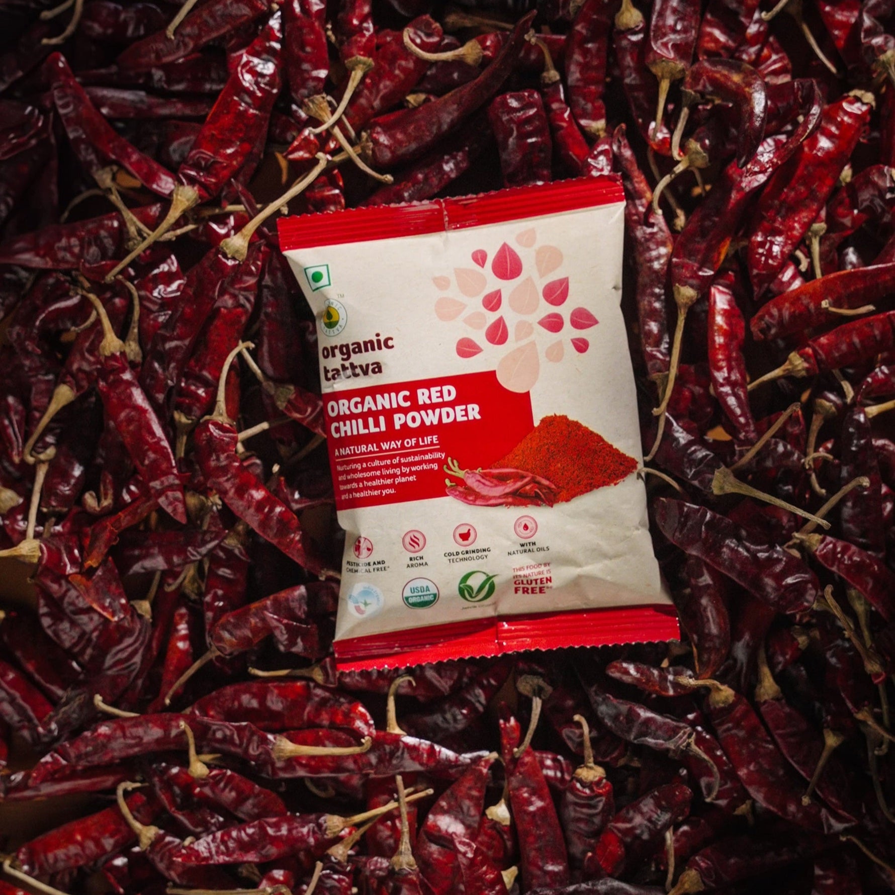 Made from organically grown, dried and crushed red chilli peppers, Organic Tattva’???s Organic Red Chilli Powder adds immense flavour and natural colour to a host of dishes. Besides, Organic Chilli Powder also acts as a great antioxidant and can strengthen the immune system.