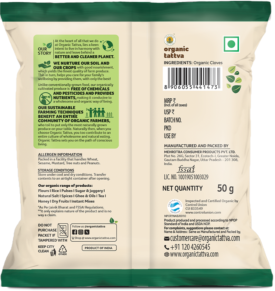 Organic Tattva’s organic cloves are grown without chemical pesticides. They are harvested at the right maturity stage. This helps preserve essential oils and natural potency.