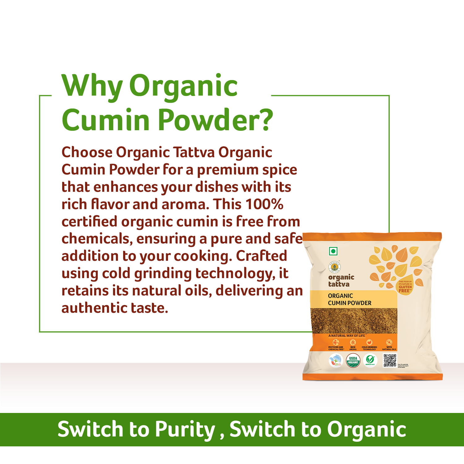 Pure and unadulterated, Organic Tattva’s Organic Cumin Powder is made by finely grinding a hand-picked selection of high-quality organic cumin (jeera) seeds. The careful processing helps retain its natural oils, aroma, and nutritional value.