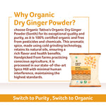 Dry Ginger is known for its therapeutic properties and is usually available in a split or sliced form. We obtain our Organic Dry Ginger Powder by sun-drying and crushing freshly obtained ginger slices. Entirely free from chemical and pesticides, it never fails to lend a deliciously sharp and pungent flavour to your food. Dry ginger is also known to help burn fat, aide digestion, speed up metabolism and fat absorption, and is often consumed during the winters. So, go right ahead and use Organic Tattva's Organic Dry ginger Powder generously, in your curries, marinades, stews, soups, etc.