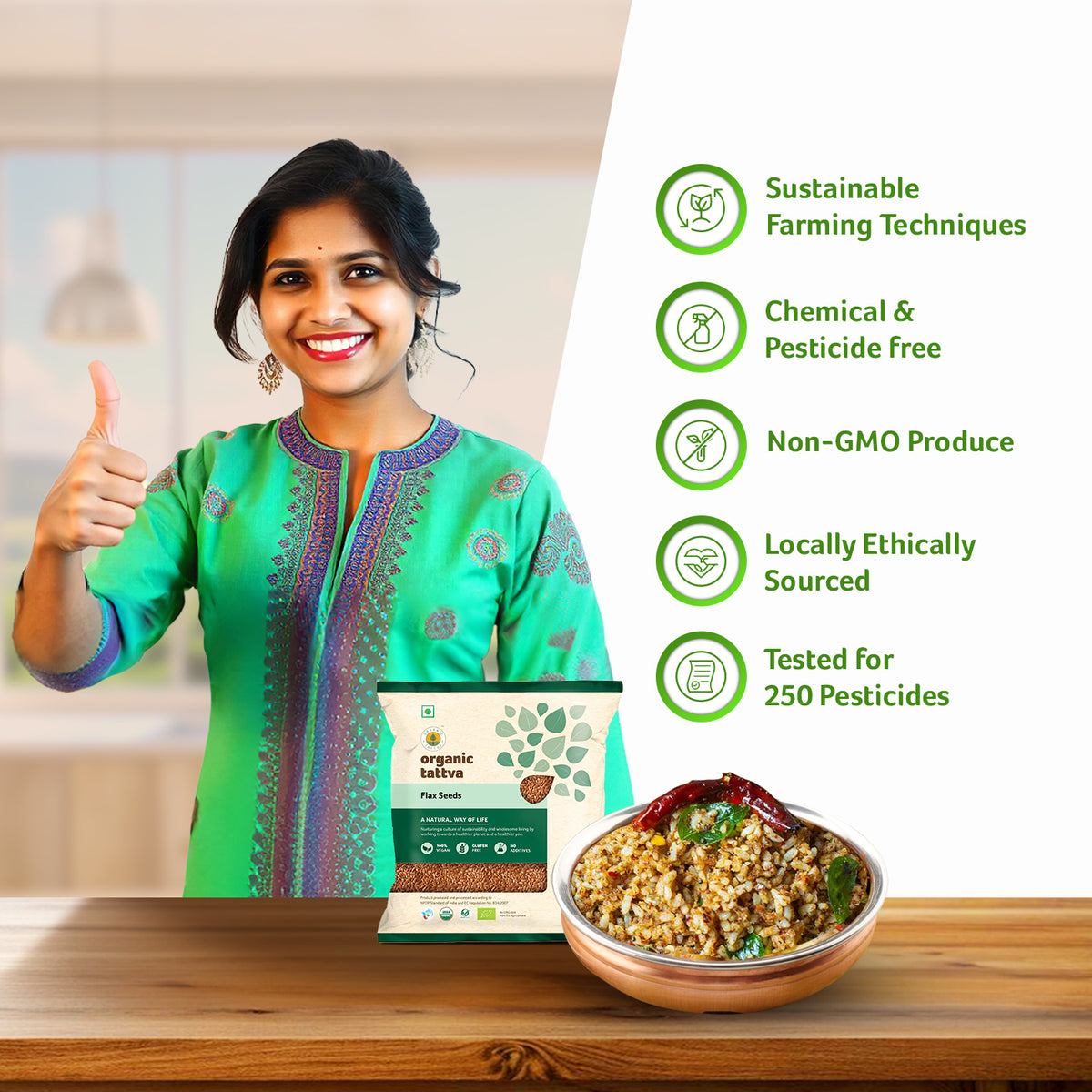 they are a delicious addition to every meal! We also cultivate our flax seeds, without pesticides, artificial fertilizers, and chemicals. For a healthy lifestyle, switch to Organic Tattva’ Organic Flax Seeds!