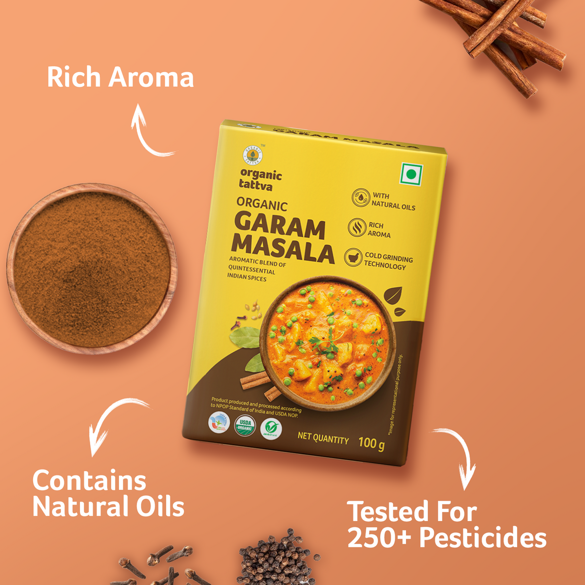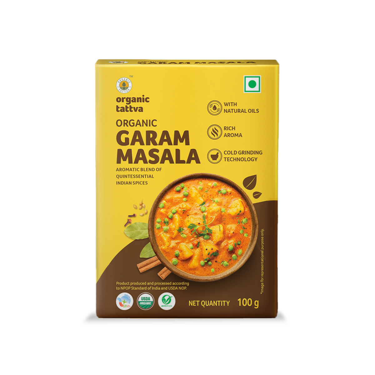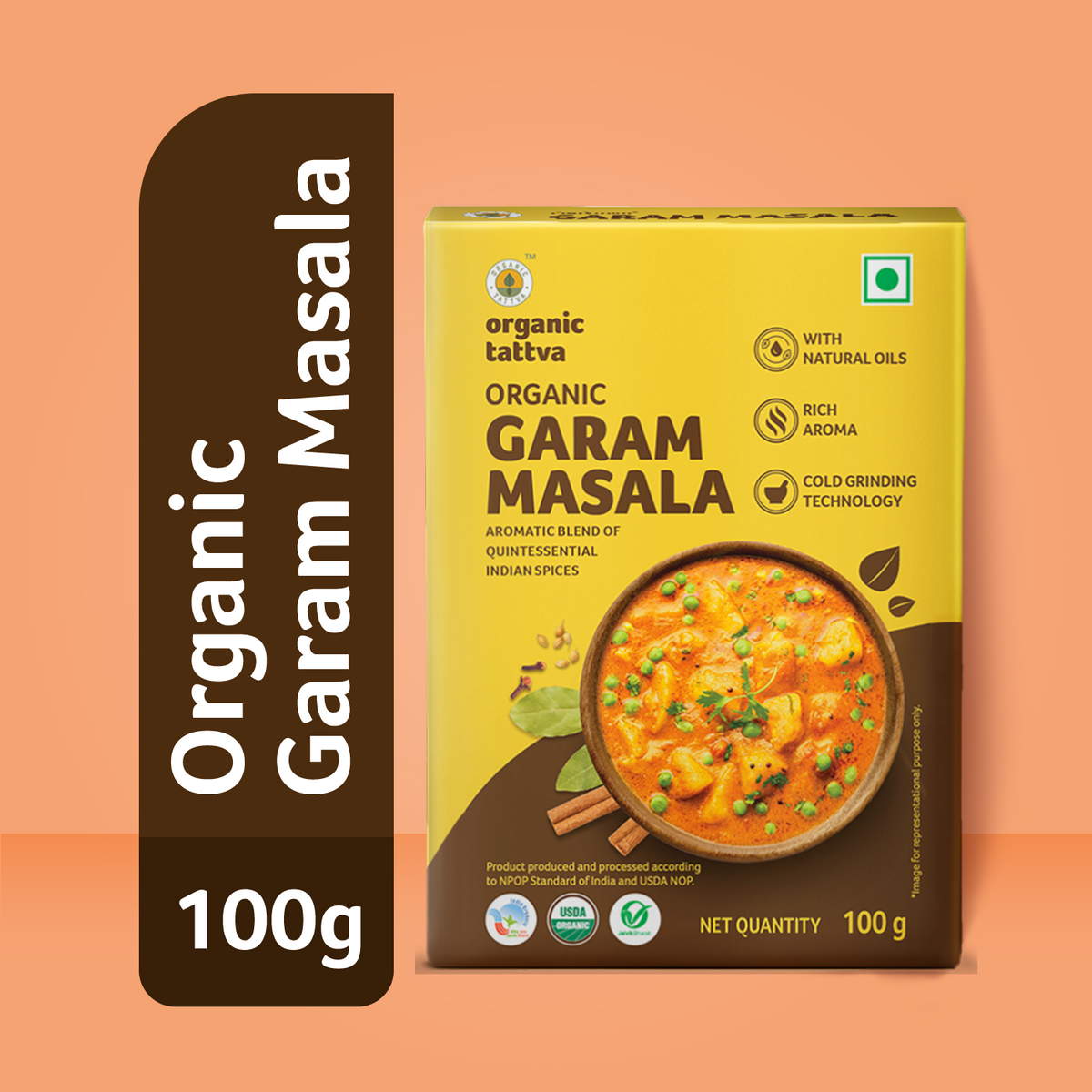 Organic Garam Masala by Organic Tattva is a fragrant blend of carefully selected whole organic spices, dry roasted and finely ground to deliver authentic Indian flavour.