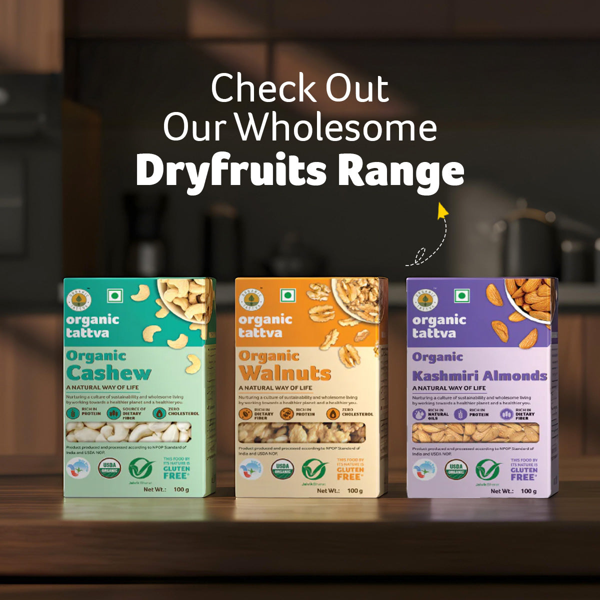 Organic Tattva is an online retailer offering pure, certified organic food products across categories like flours, pulses, oils, dry fruits, health foods, teas, ready-to-cook items, and more.