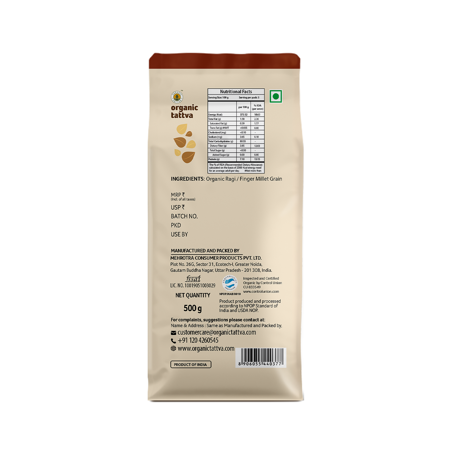 Many people search for ragi flour price or compare ragi flour 1kg price before buying. Organic Tattva ensures competitive prices while maintaining purity, freshness, and nutrition in every pack.