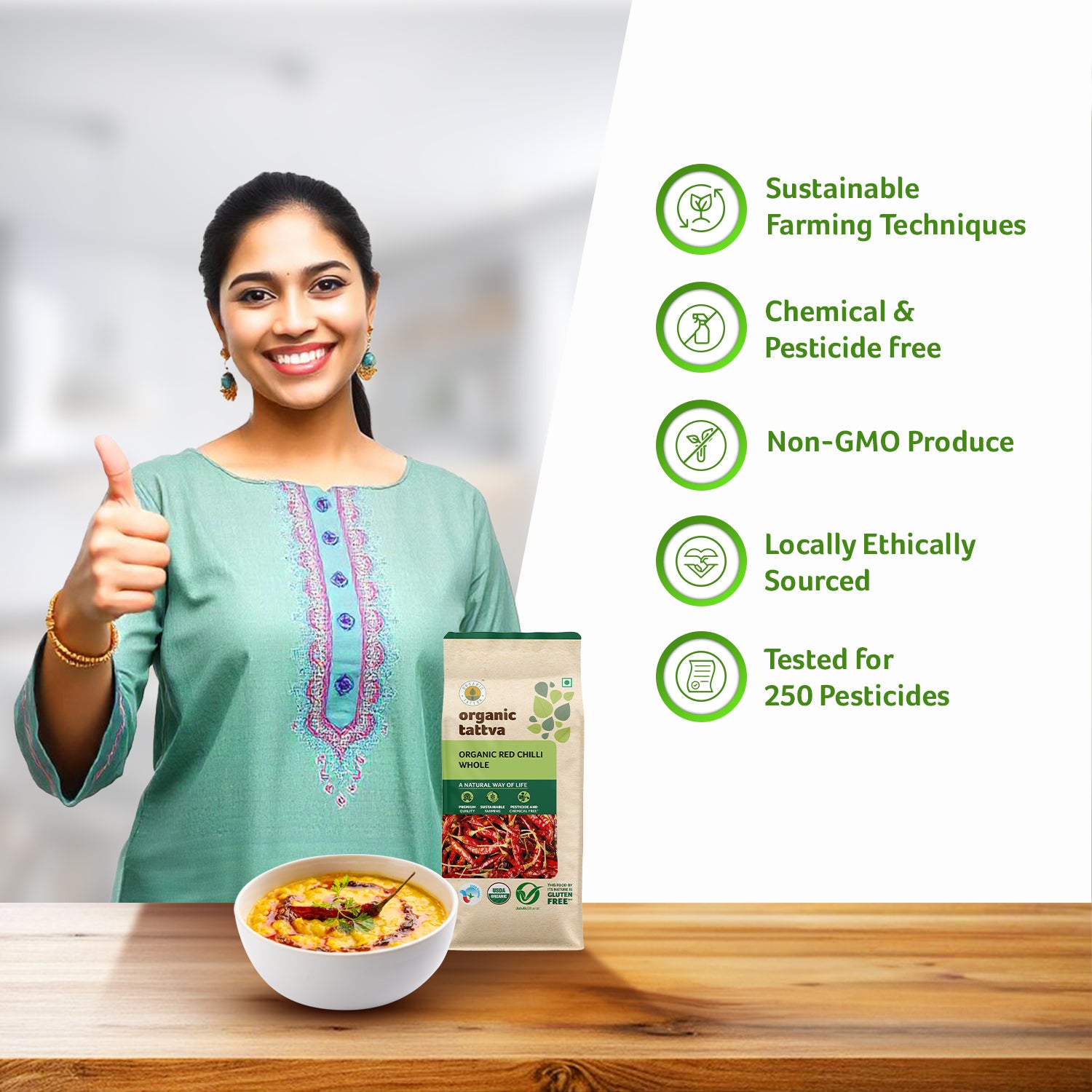 Native to every Indian household, whole red chillies are used in the preparation of almost every dish, from curries to snacks, dals, pickles, stews, etc. Red chillies add flavour and spice to Indian dishes. Additionally, red chillies are also a powerhouse of wholesome goodness . they can help fight inflammation, can help with weight loss, and are also believed to strengthen the immune system. So, go right ahead, and don’t shy away from adding a chilli or two to your food every day!