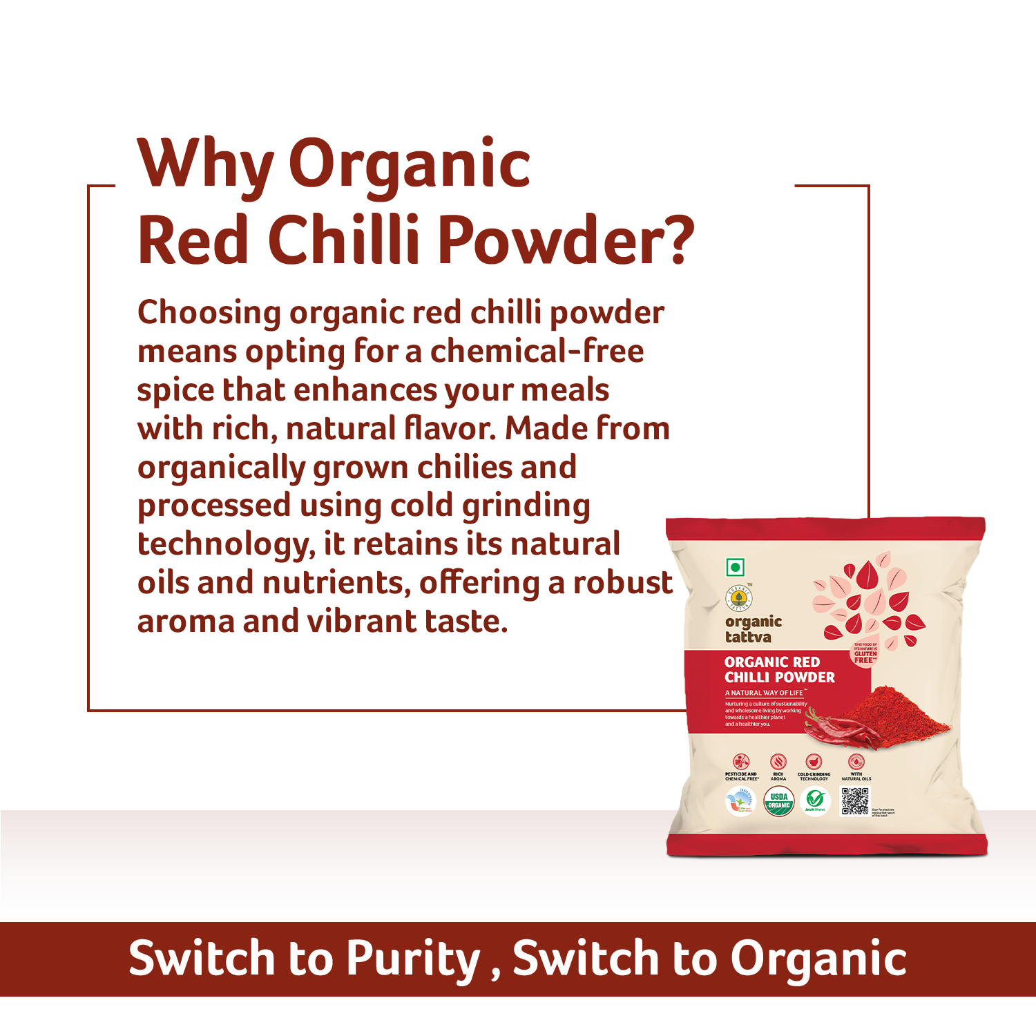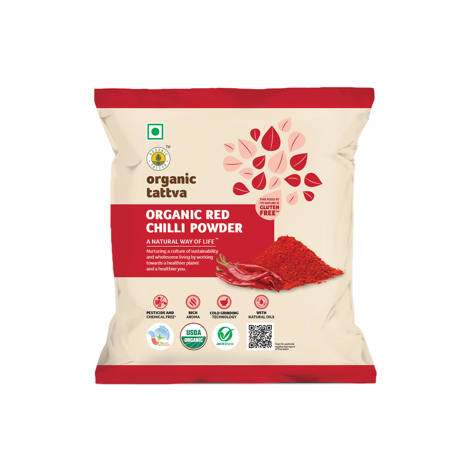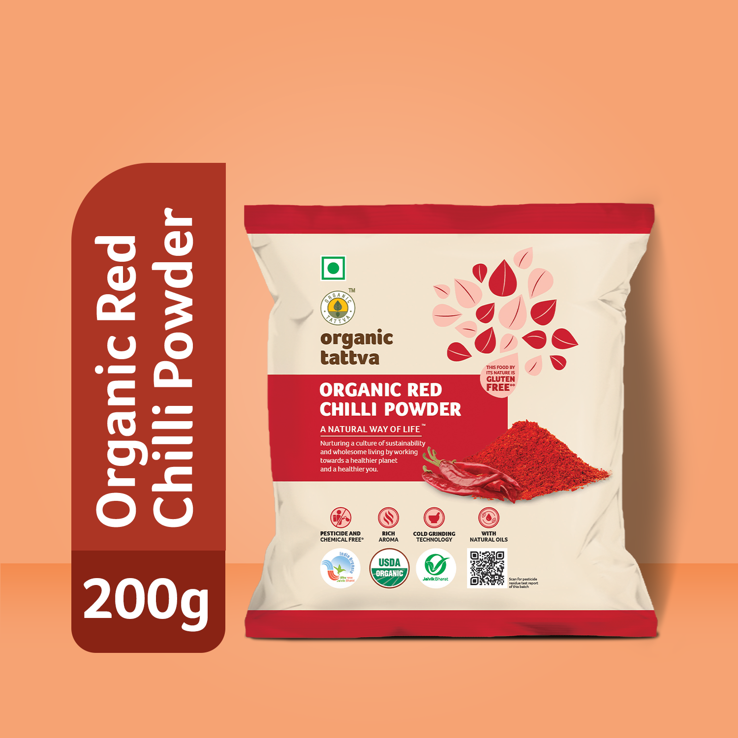Organic Tattva’s Organic Red Chilli Powder is made from carefully selected, organically grown red chillies. The chillies are sun-dried and finely ground to retain their natural colour, aroma, and pungency.