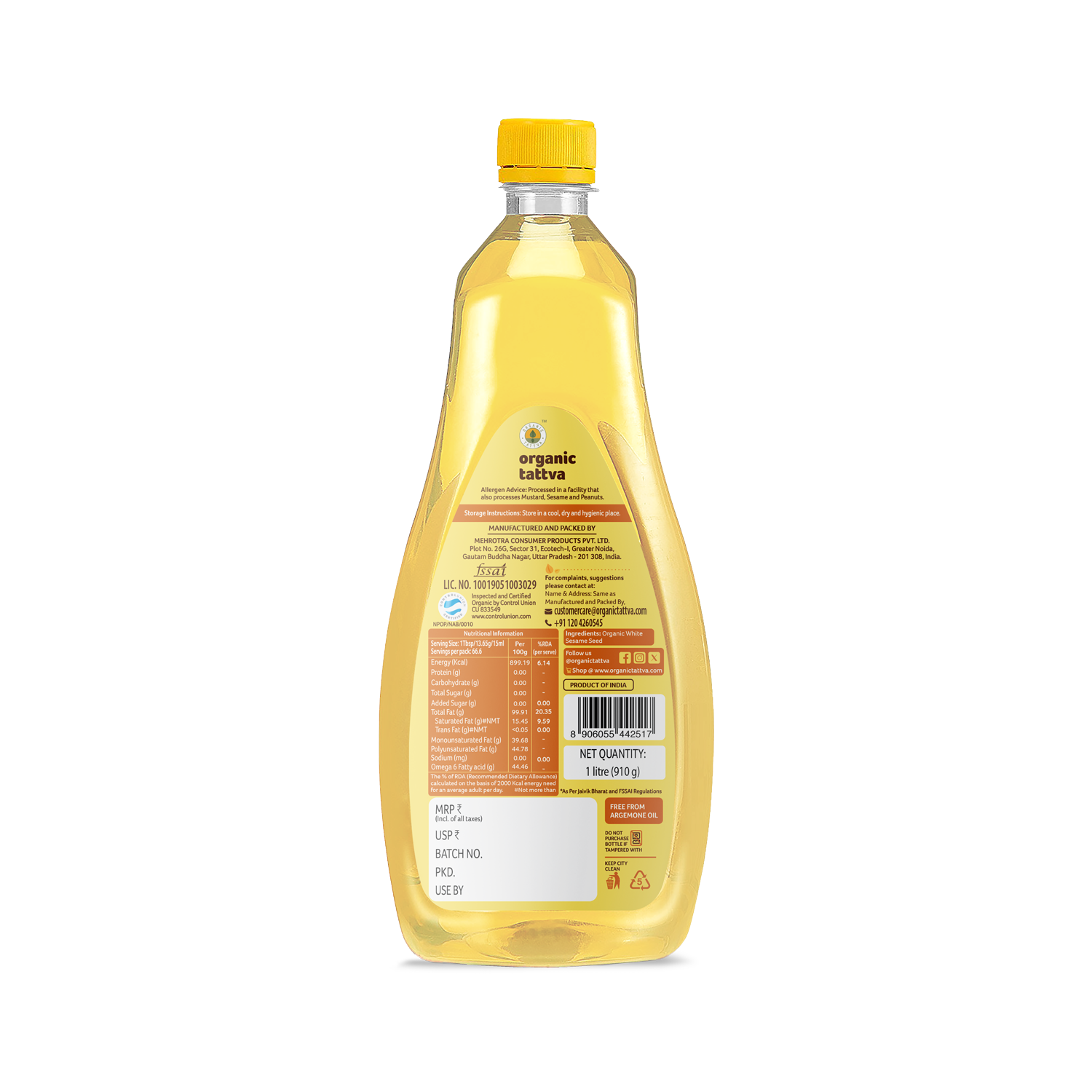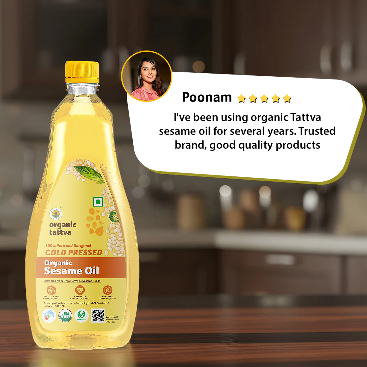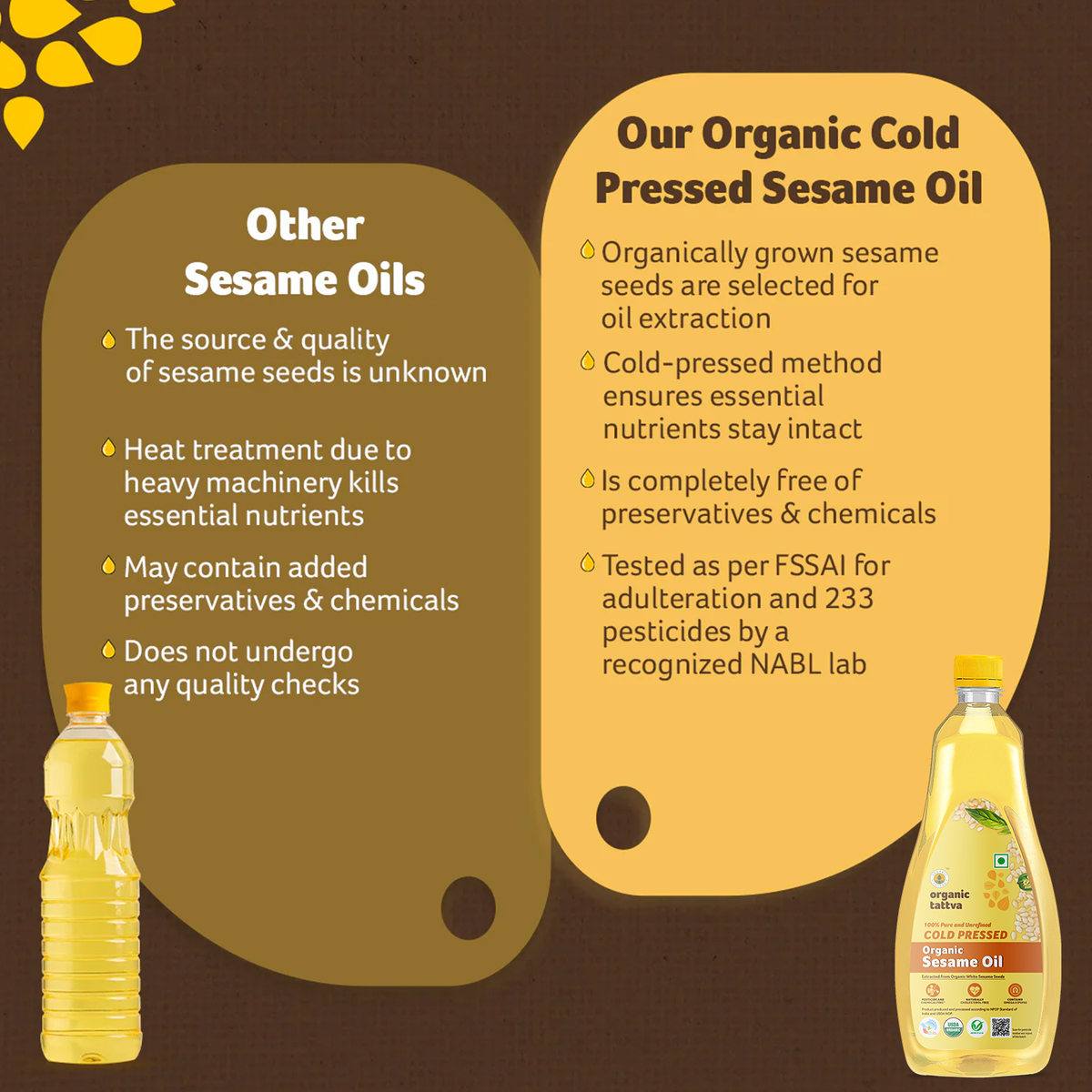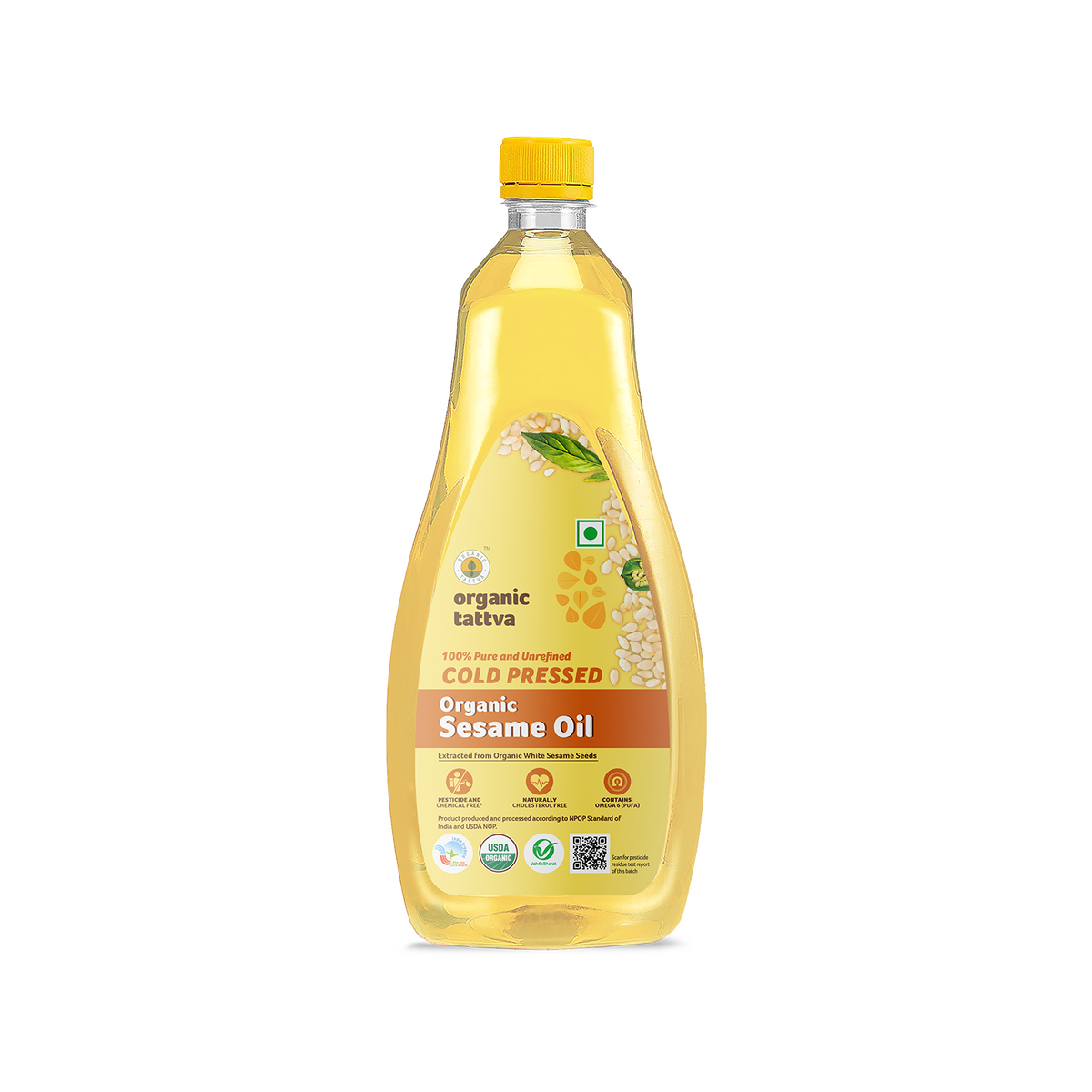 Organic Tattva’s Organic Sesame Oil is a premium-quality cold pressed sesame oil made from carefully selected organic sesame seeds. The oil is extracted using traditional wooden-press methods that retain natural nutrients, aroma, and flavor.