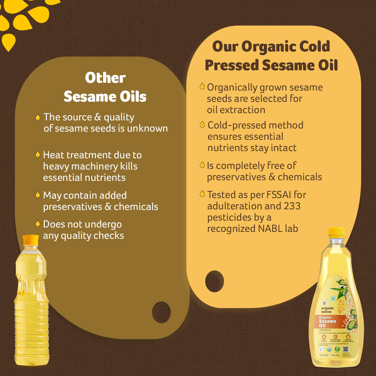 Extracted from organically grown sesame seeds, Organic Cold Pressed Sesame Oil makes for a wonderful and healthy flavoring agent in food. At the same time, it helps stimulate bone growth and promote good physical health. Slightly nutty in aroma and flavor, this oil is the perfect partner for stir-fried food. It’s also unrefined and does not contain preservatives or colors. If leading a healthy life is your mantra, then switch to Organic Cold Pressed Sesame Oil, today!
